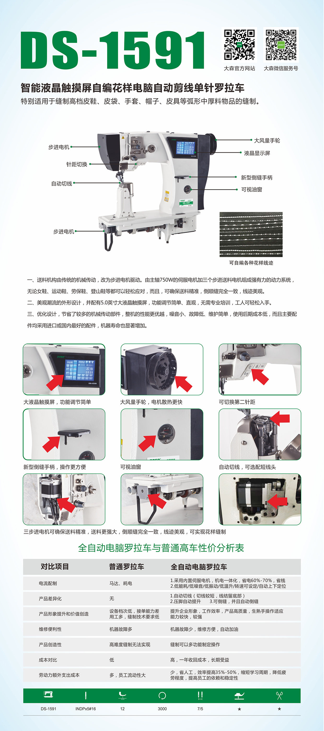 智能液晶触摸屏自编花样电脑自动剪线 单针罗拉车