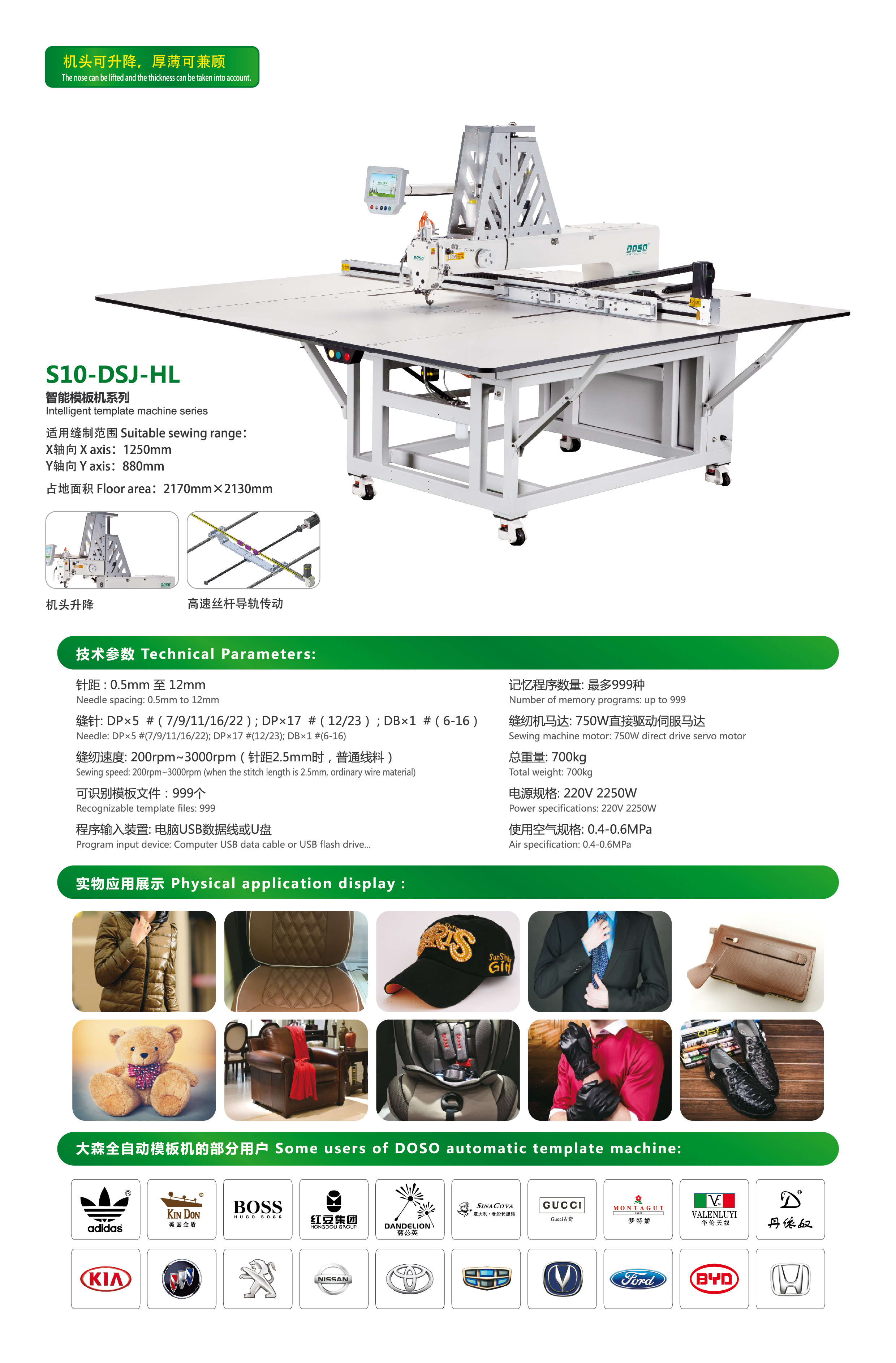 适用缝制范围:
