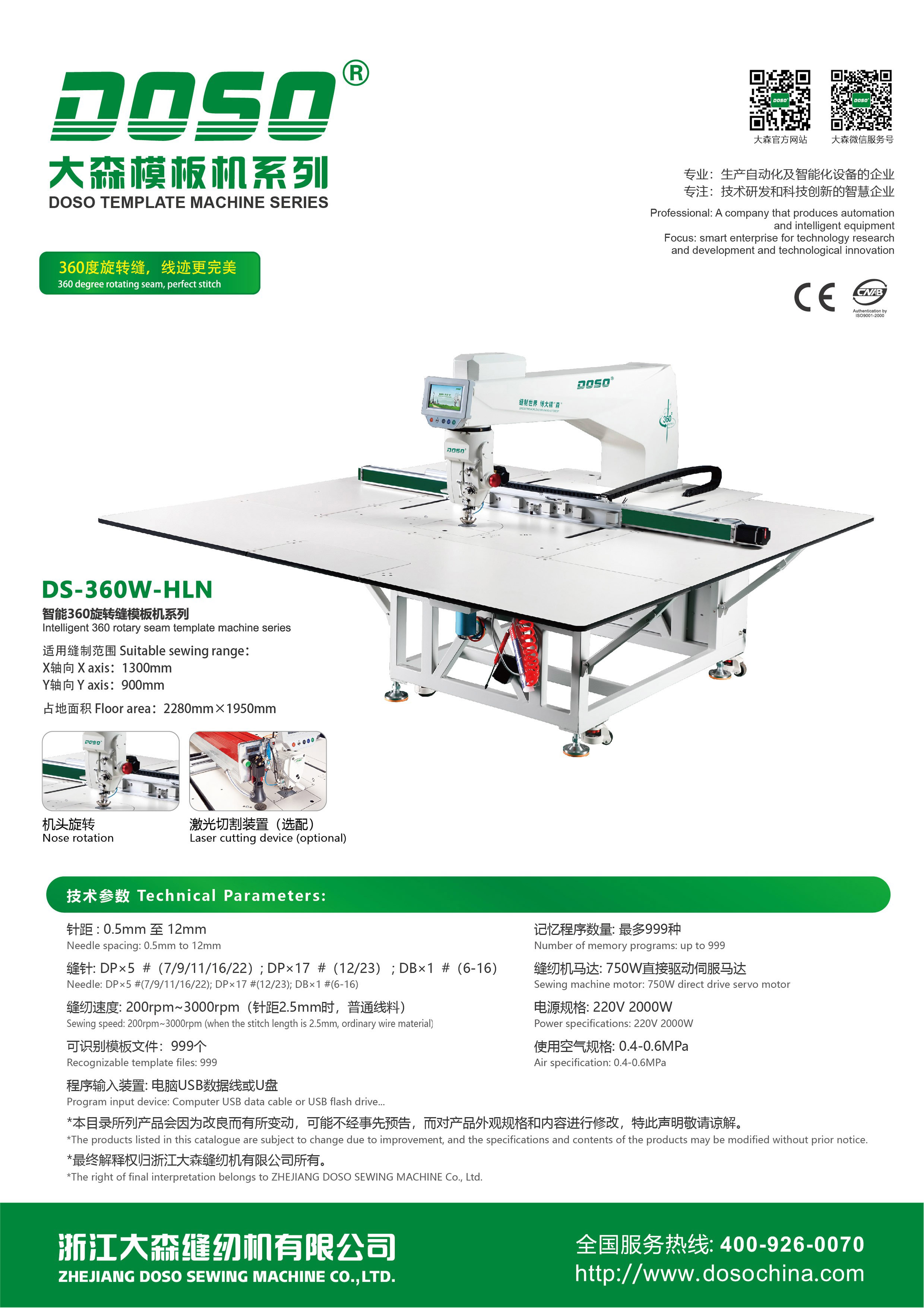 适用缝制范围: X轴向:1300mm Y轴向:900mm 占地面积:2280mm×1950mm