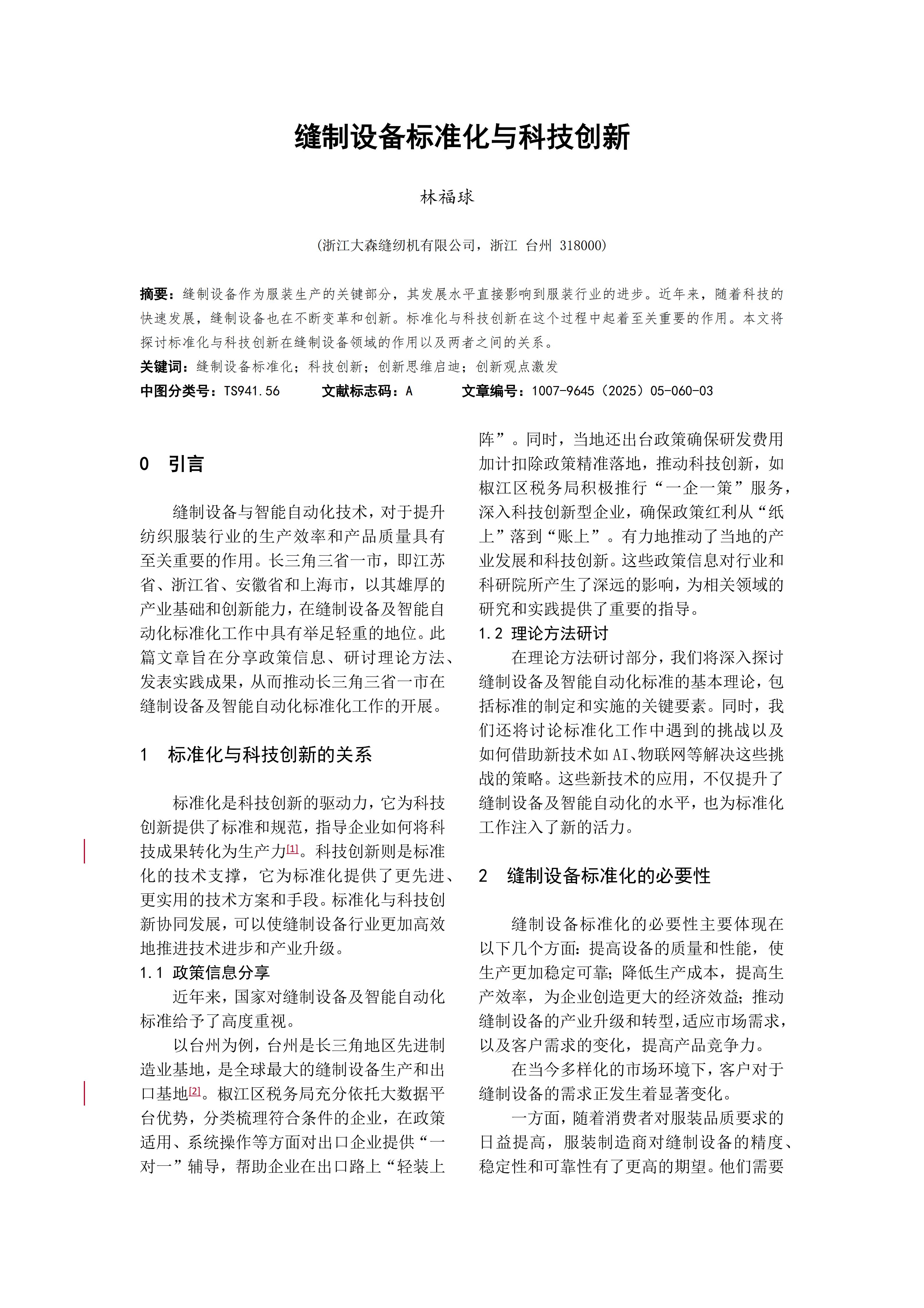 缝制设备标准化与科技